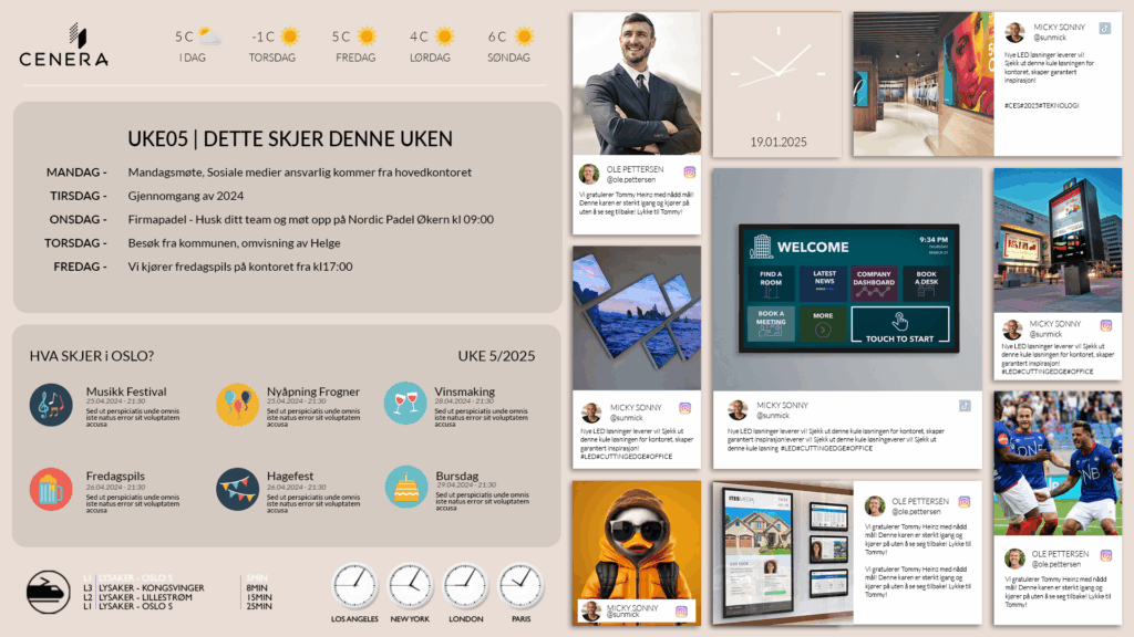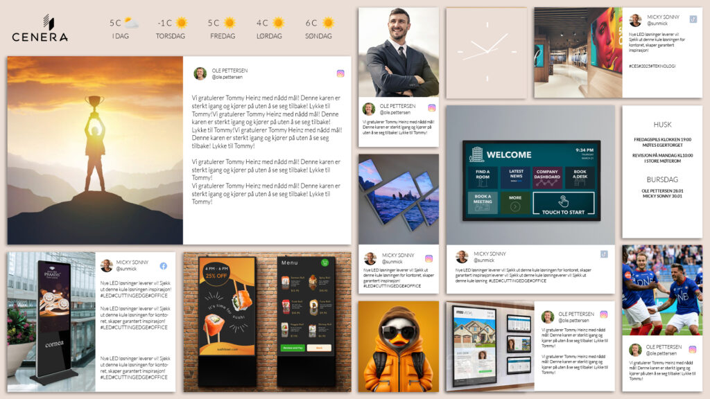 I dagens hybride og hektiske arbeidsmiljø er tydelig og engasjerende internkommunikasjon viktigere enn noensinne. Med digital signage og interaktive informasjonsskjermer gir du dine ansatte relevant informasjon i sanntid.